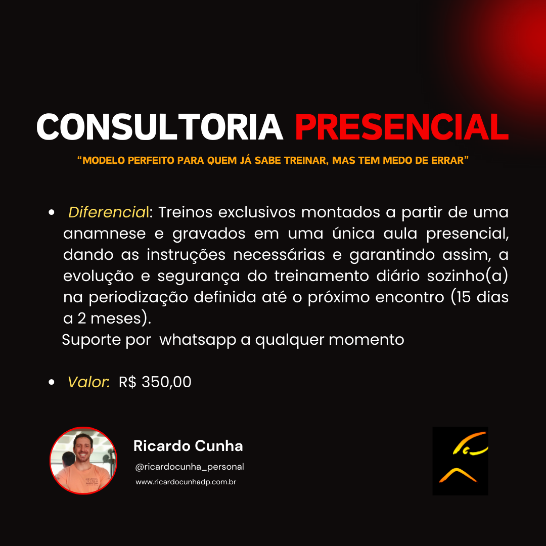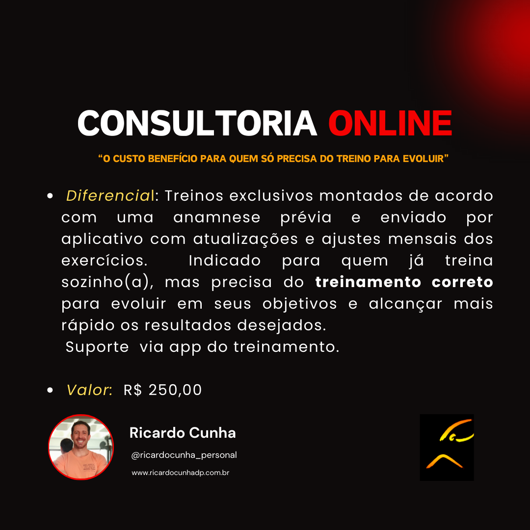 Já fiz aulas presenciais e online com o Ricardo [...] Reduzi 20kg de peso, ganhando massa magra e adquirindo um condicionamento físico que nunca havia tido em meus 46 anos. Recomendo sem hesitar!